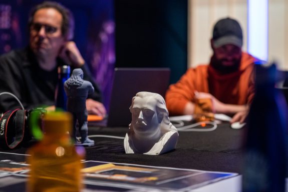 En présence des entreprises partenaires de l’exposition: Thierry bertomeu, producteur de Nova Pista, Pascal Goblot, réalisateur producteur d’Escalenta et un représentant de Mazedia.