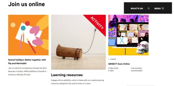 Le 17 avril 2020, le Museum of Contemporary Art Australia a annoncé sa nouvelle initiative numérique Your MCA, destinée à offrir des moyens de se connecter avec l’art contemporain et les artistes australiens pendant la fermeture du musée, demandée par le gouvernement le 23 mars 2020.