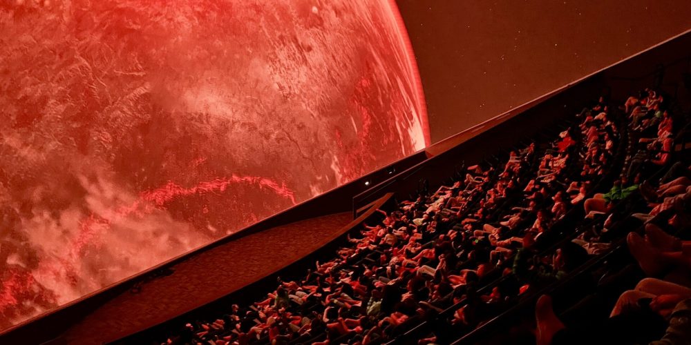 Les spectacles commencent par une visite en direct du ciel sur l’écran de près de 1 000 mètres carrés, dirigée par l’un des astronomes du MOSI.