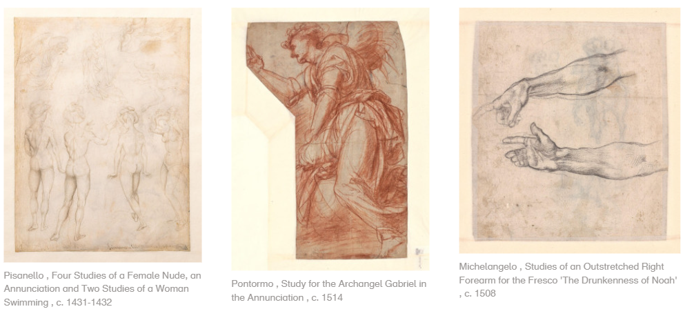 Les dessins de Venise et de Florence sont particulièrement bien représentés, avec plus de 400 dessins de Fra Bartolommeo et des groupes d’études des ateliers de Benozzo Gozzoli, Jacopo Tintoretto et Paolo Veronese.