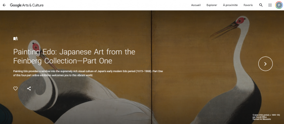 Pour faire face à  la fermeture de l’exposition  Peinture Edo: Art japonais de la collection Feinberg pour cause de covid-19 (les musées restent fermés et tous les programmes publics ont été annulés jusqu’au 7 septembre 2020), le Harvard Art Museums et Google on décidé de coproduire et mettre en ligne sur Google Arts & Culture un dispositif numérique gratuit, constitué notamment de visites virtuelles et de discussions vidéo.