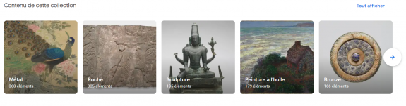 Cette contribution permet aux utilisateurs d’explorer des exemples de peintures, de sculptures, de dessins, d’estampes, de photographies, de pièces de monnaie, d’arts décoratifs et d’autres objets des collections des musées, y compris des œuvres du 2e millénaire avant  notre  ère  au XXe siècle, des Amériques, d’Europe Afrique du Nord, Méditerranée et Asie.